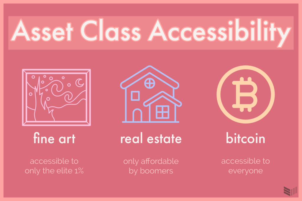 Muchos grandes bancos y corredores de bolsa dicen a la gente que sólo sus clientes más ricos, «acreditados» y elitistas tienen acceso a esta clase de activos relativamente nueva. Se trata de una estratagema ridícula del sistema financiero tradicional, que sigue negando injustamente la igualdad de participación en servicios financieros que deberían ser accesibles a todos. Afortunadamente, el bitcoin no requiere ningún permiso para participar.