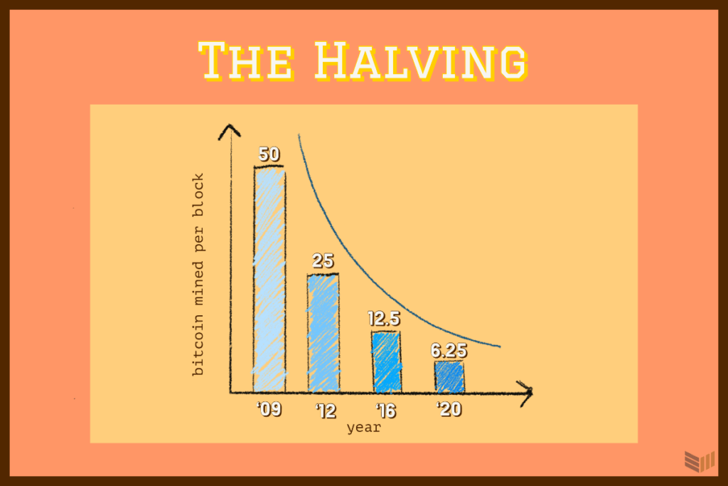 Cada 210.000 bloques -aproximadamente cada cuatro años-, el número de bitcoins nuevos extraídos por bloque se reduce a la mitad. A partir de 2021, sólo se minarán 6,25 bitcoins nuevos en cada bloque. En 2024, la recompensa por bloque se reducirá a 3,125 bitcoins.