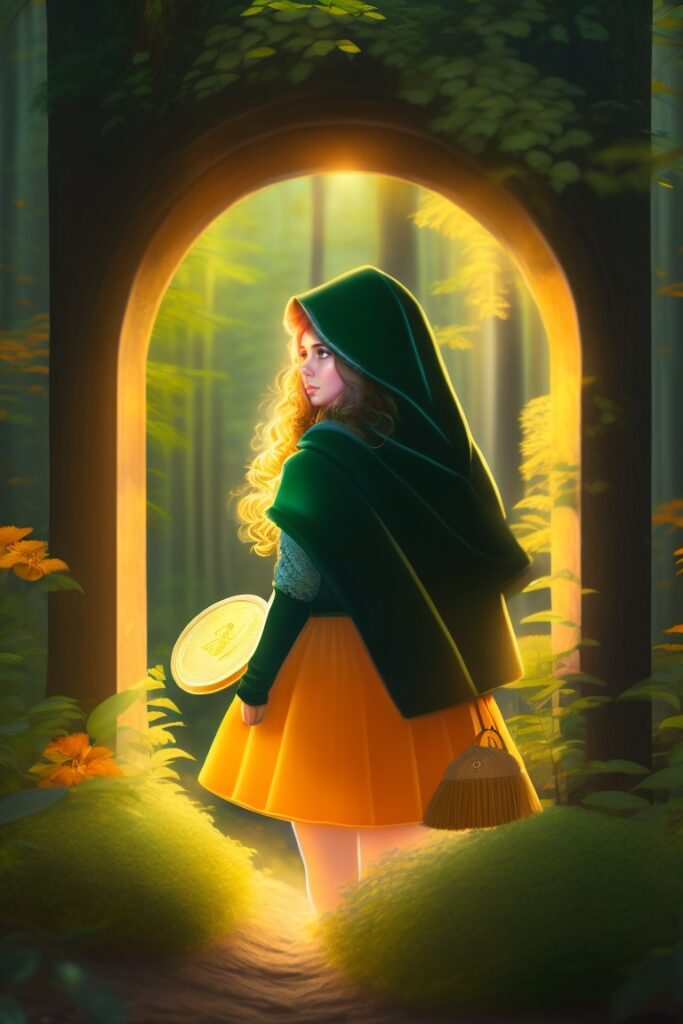Aria había estado merodeando por el mercado local cuando algo captó su atención. Era un antiguo y polvoriento libro oculto en un rincón de un puesto. Las páginas del libro estaban llenas de historias de una tierra lejana llamada «Bitconia». A medida que Aria hojeaba las páginas, aprendía sobre una moneda mágica llamada Bitcoin que existía solo en el reino digital.